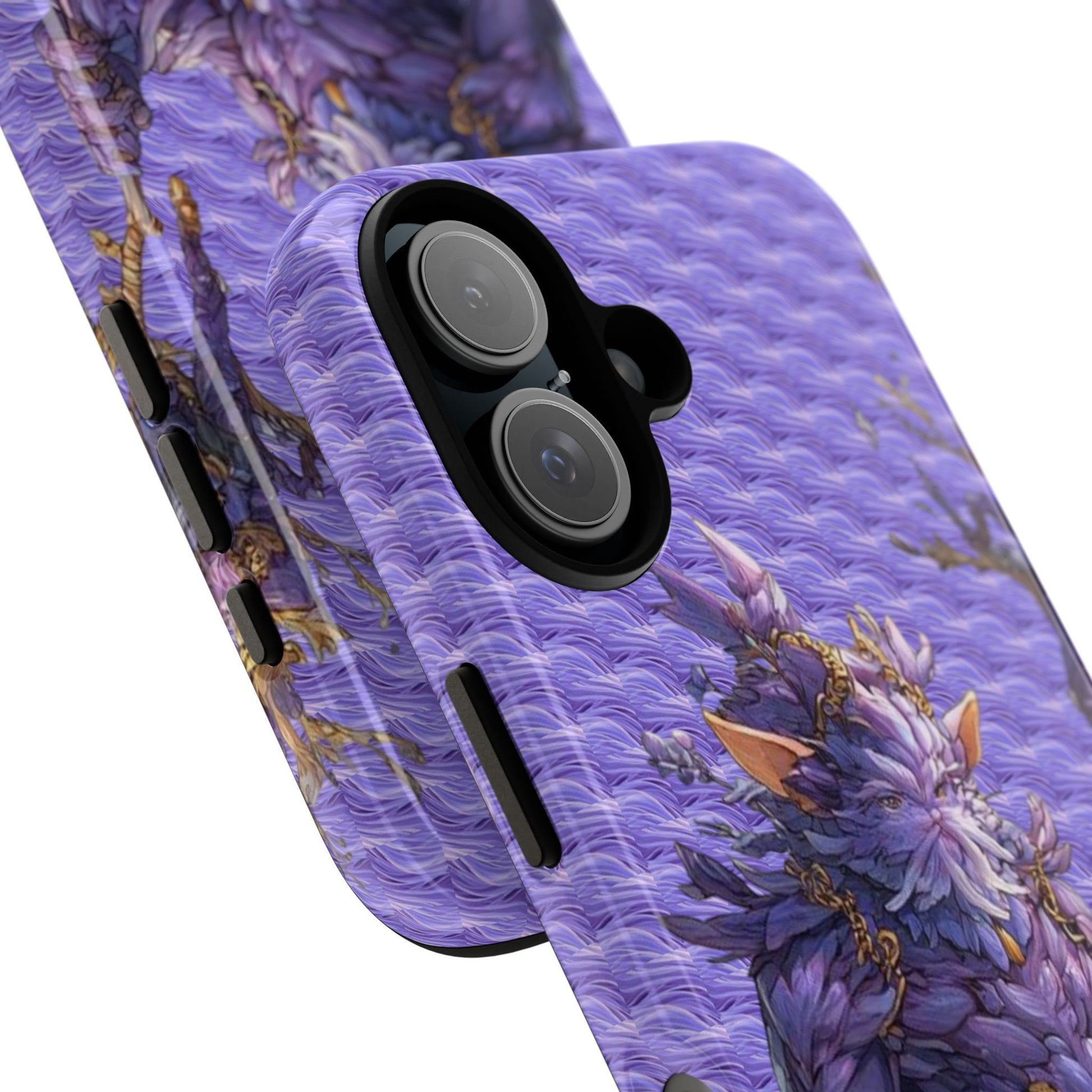 This protective phone case turns your device into a wearable piece of art. Delicate botanical illustrations in soft violet hues wrap the back in a 3D ink-transfer print that keeps its fine detail even outdoors. The dual-layer construction — a rigid polycarbonate shell with a shock-absorbing TPU silicone liner — feels substantial in hand while cushioning against drops and knocks. Clear ports and a slim profile keep daily use effortless, and the case supports wireless charging so you can power up without removing it. Thoughtful finishing options (glossy or matte) let you choose the exact look and texture you want.