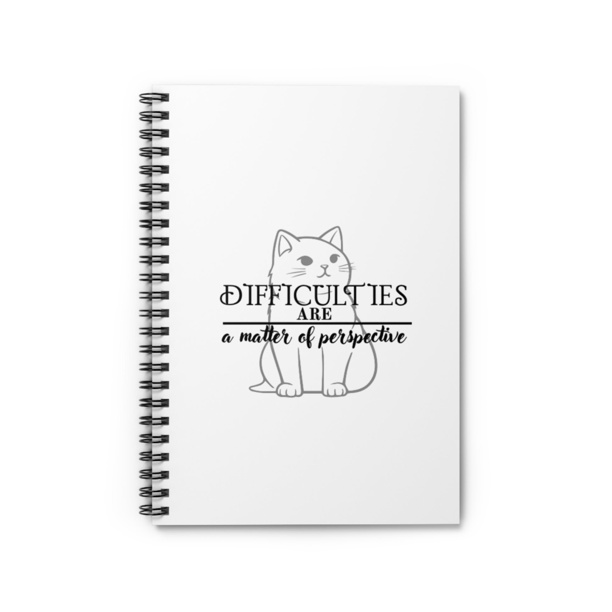 Inspirational Cat Spiral Notebook - "Difficulties Are a Matter of Perspective"
