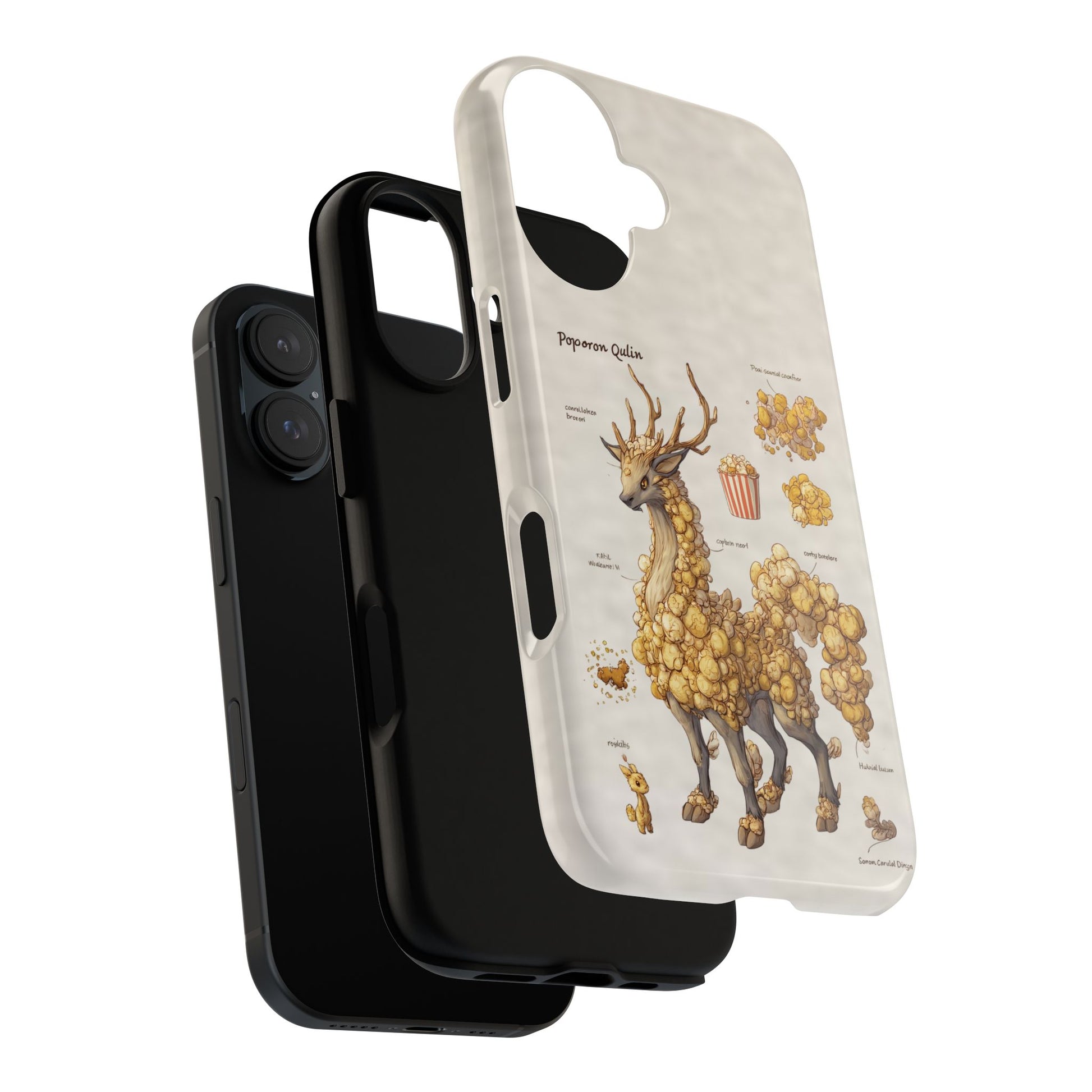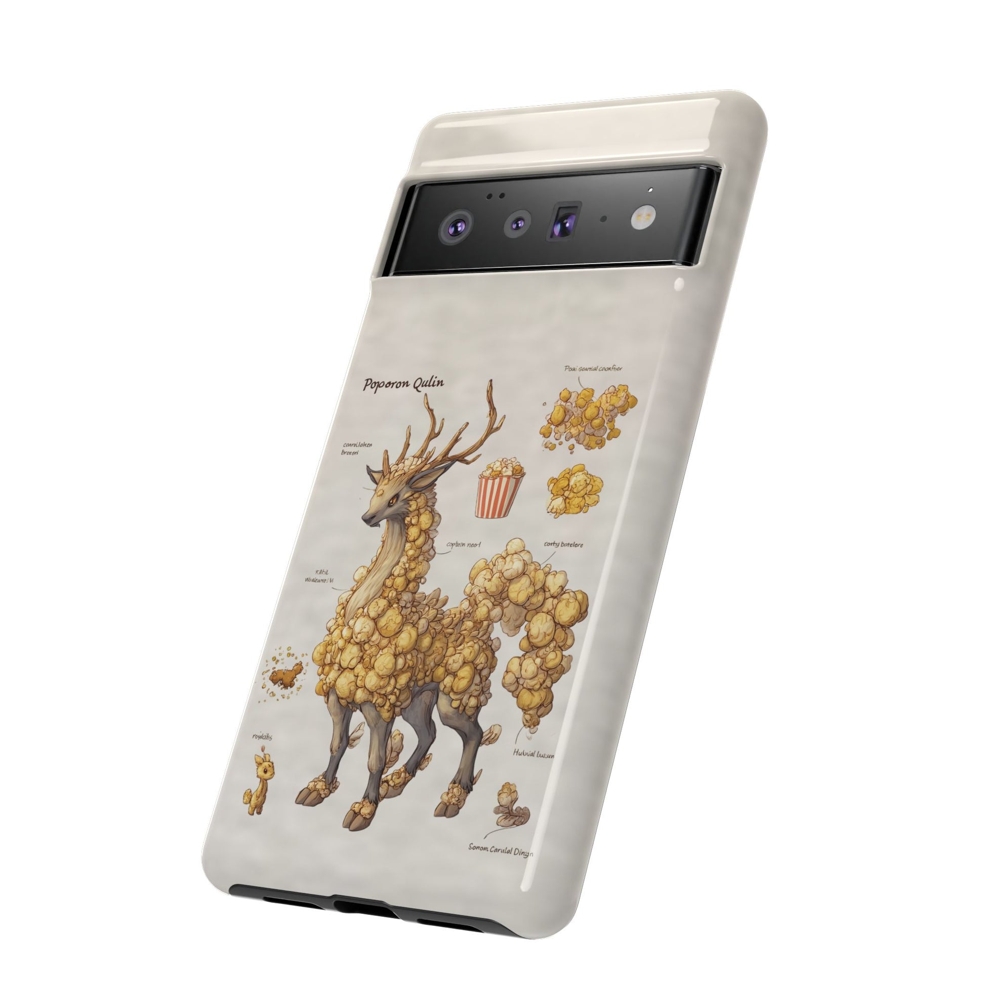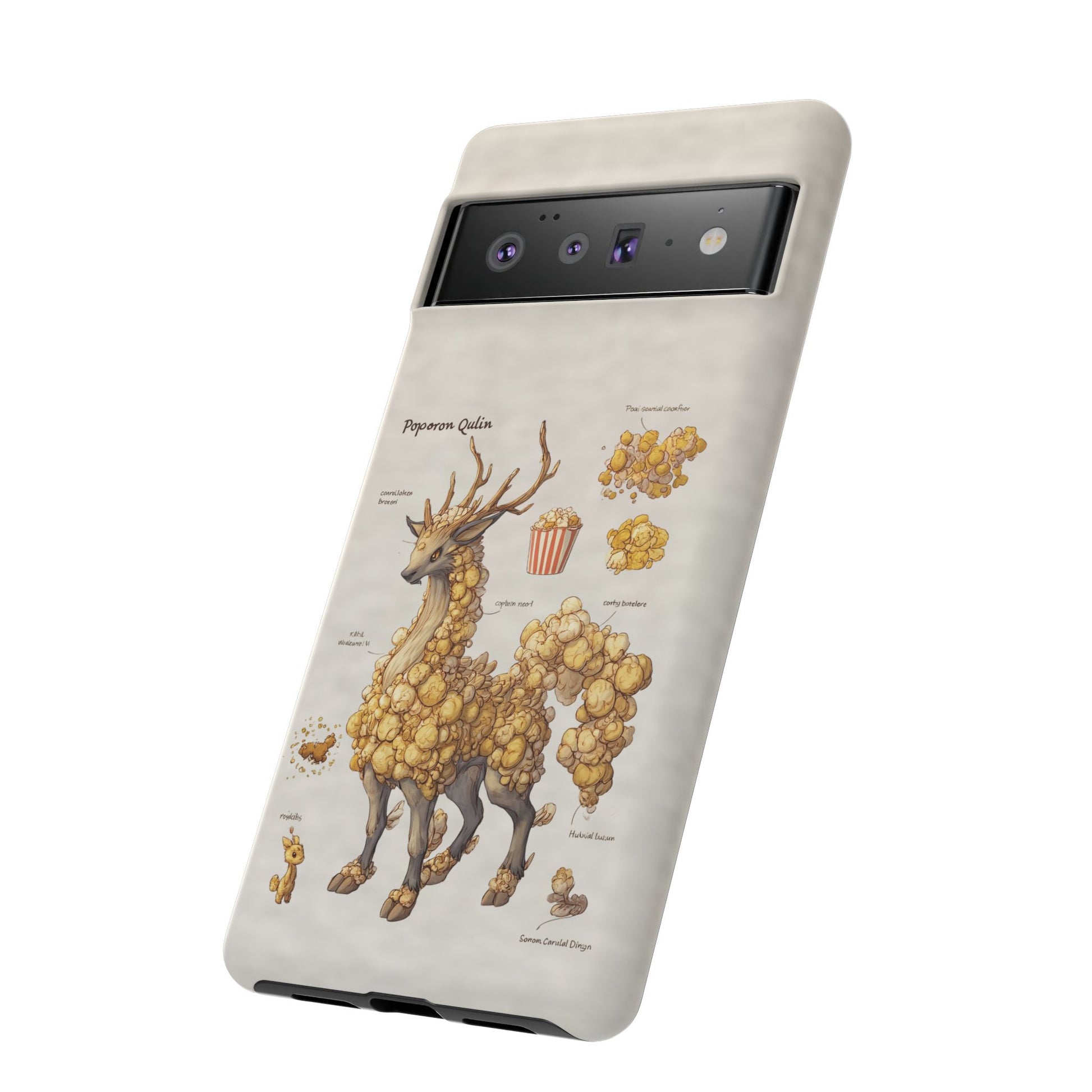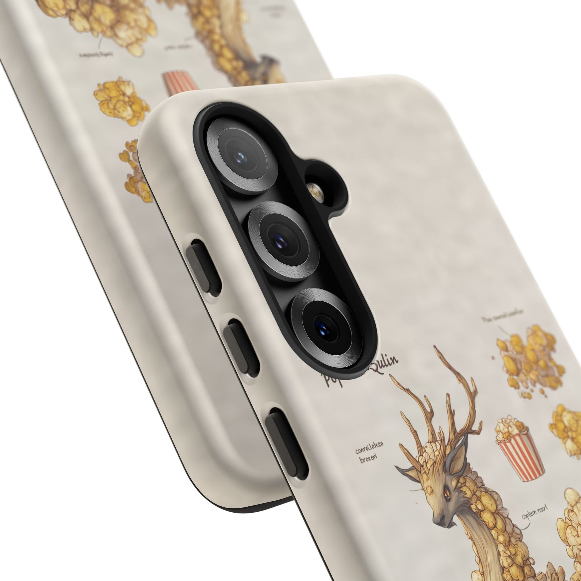 Lightweight protection with a playful, artful twist. This durable dual-layer phone case pairs a tough polycarbonate shell with a cushioned TPU silicone liner to guard against drops and daily wear. The surface showcases a whimsical botanical-creature illustration—mounds of golden popcorn-like growths forming a gentle, deer-like companion—printed in full-wrap, high-density ink that holds detail and depth. Subtle, neutral background tones keep the artwork front and center while clear port openings and wireless-charging compatibility keep everyday use effortless. Weather-resistant inks and certified materials mean the case stays looking fresh through regular use when cared for according to handling notes. Carry a little narrative and a lot of protection with you—this case blends durable function with storybook charm.