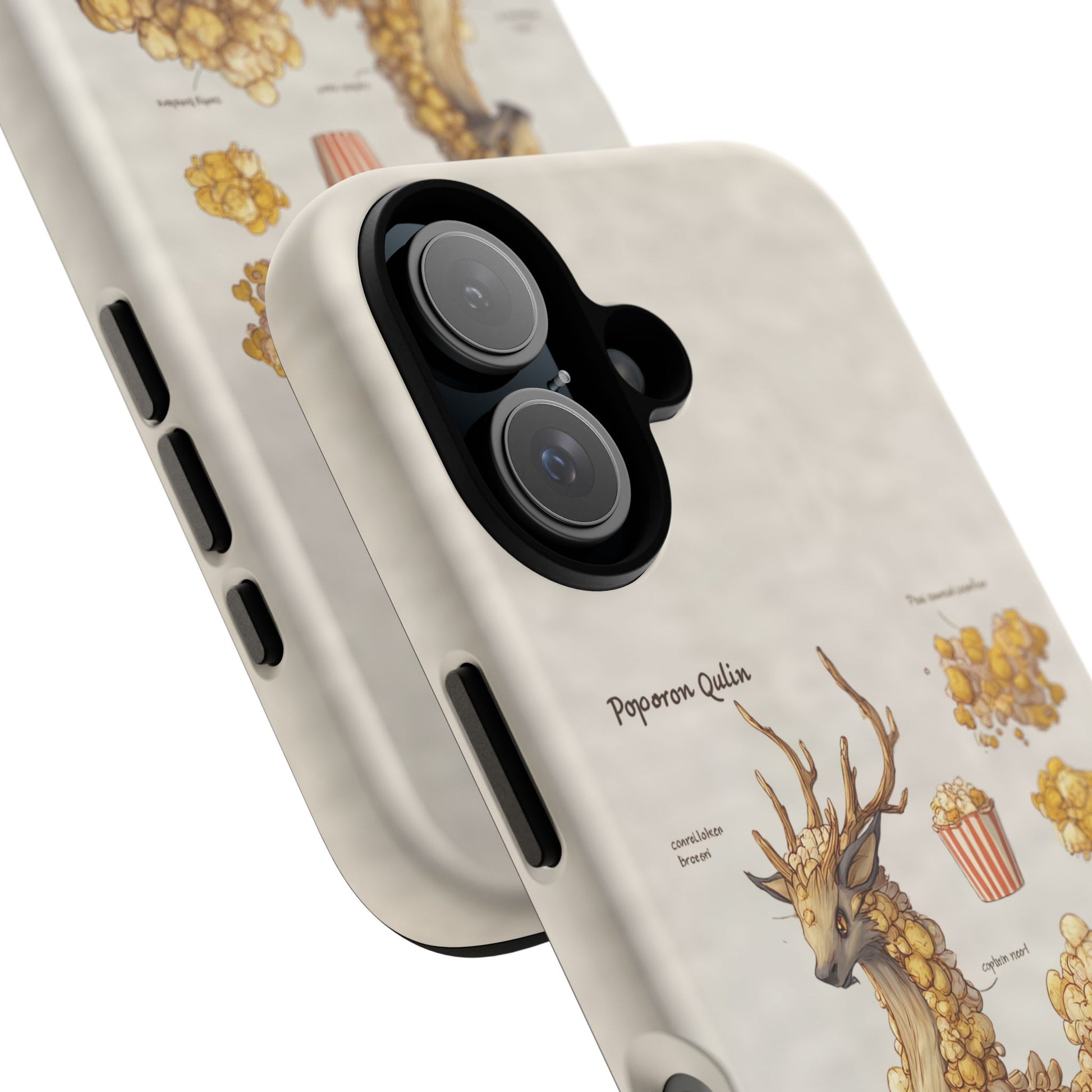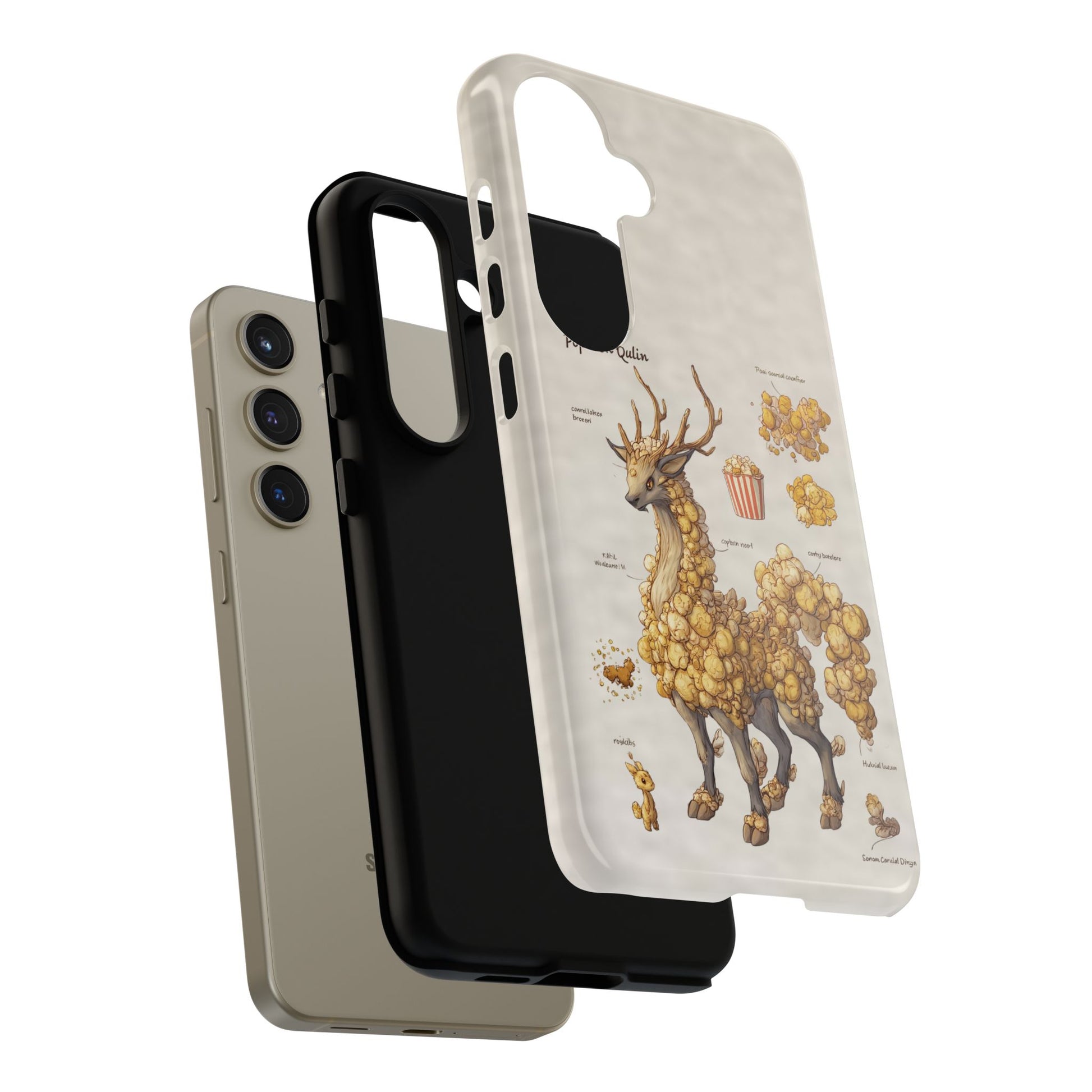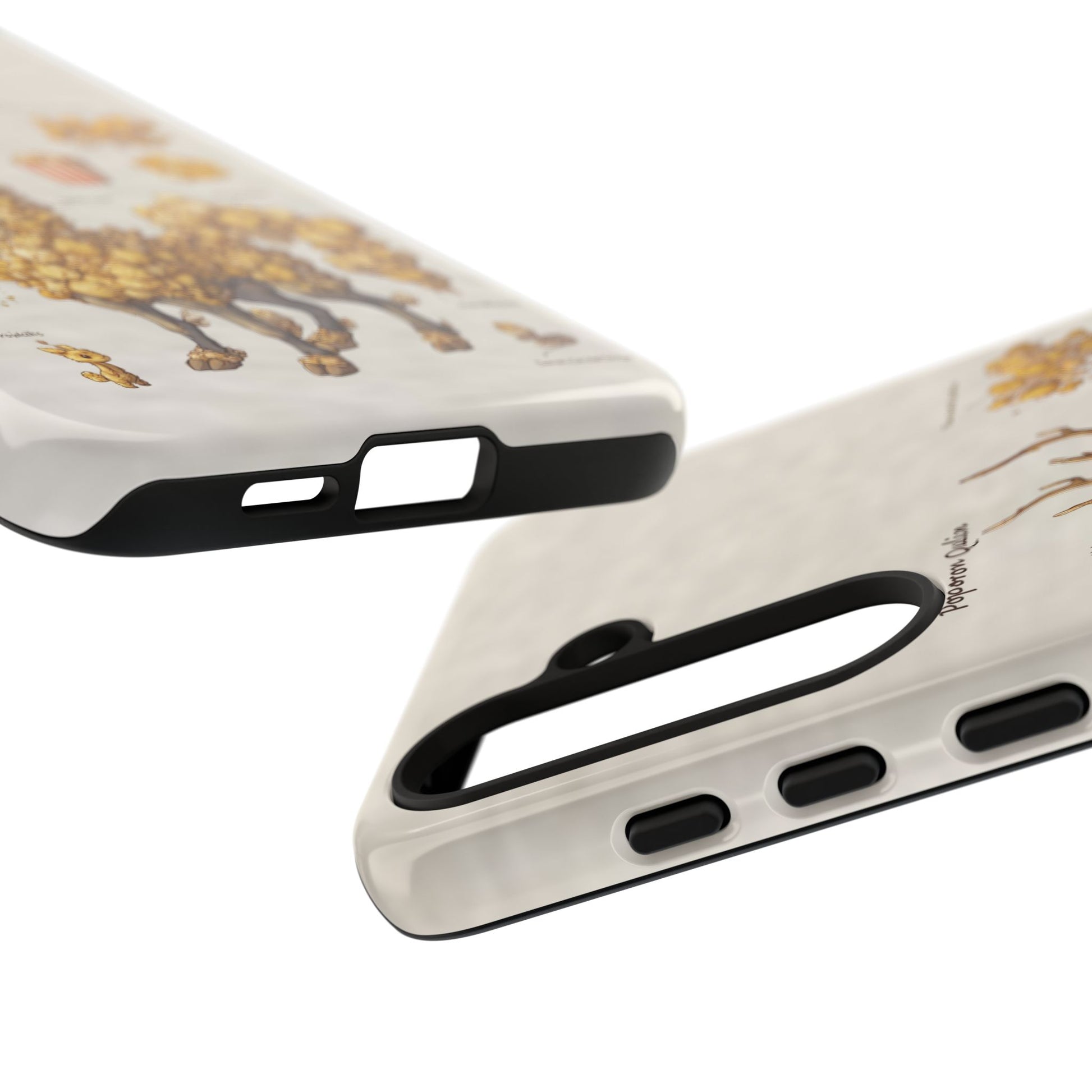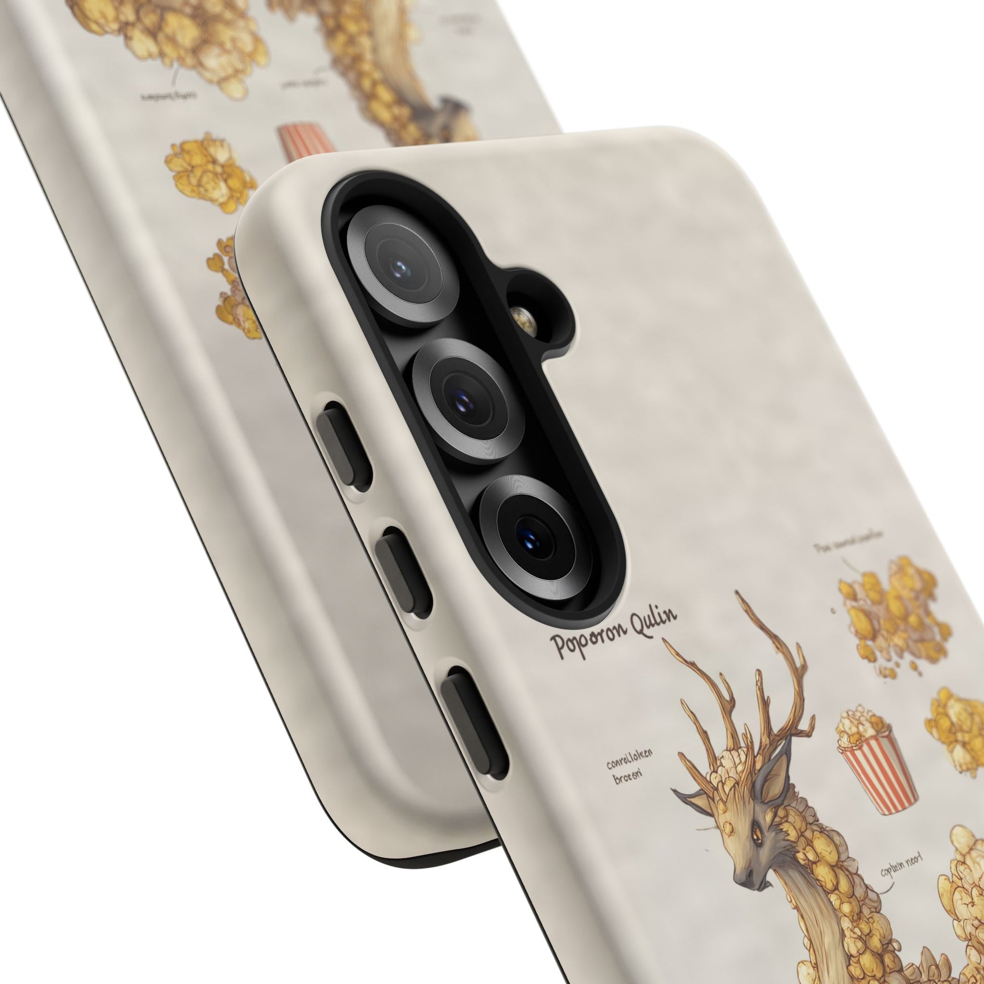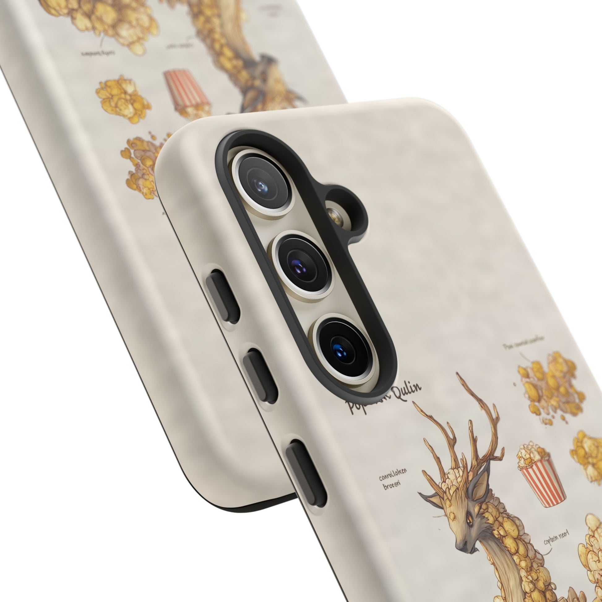 Lightweight protection with a playful, artful twist. This durable dual-layer phone case pairs a tough polycarbonate shell with a cushioned TPU silicone liner to guard against drops and daily wear. The surface showcases a whimsical botanical-creature illustration—mounds of golden popcorn-like growths forming a gentle, deer-like companion—printed in full-wrap, high-density ink that holds detail and depth. Subtle, neutral background tones keep the artwork front and center while clear port openings and wireless-charging compatibility keep everyday use effortless. Weather-resistant inks and certified materials mean the case stays looking fresh through regular use when cared for according to handling notes. Carry a little narrative and a lot of protection with you—this case blends durable function with storybook charm.