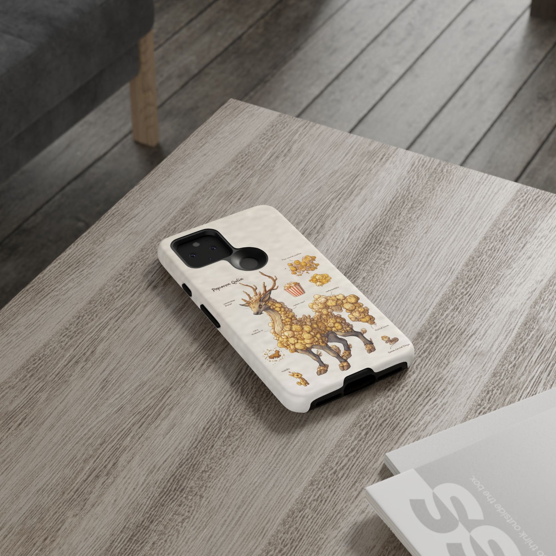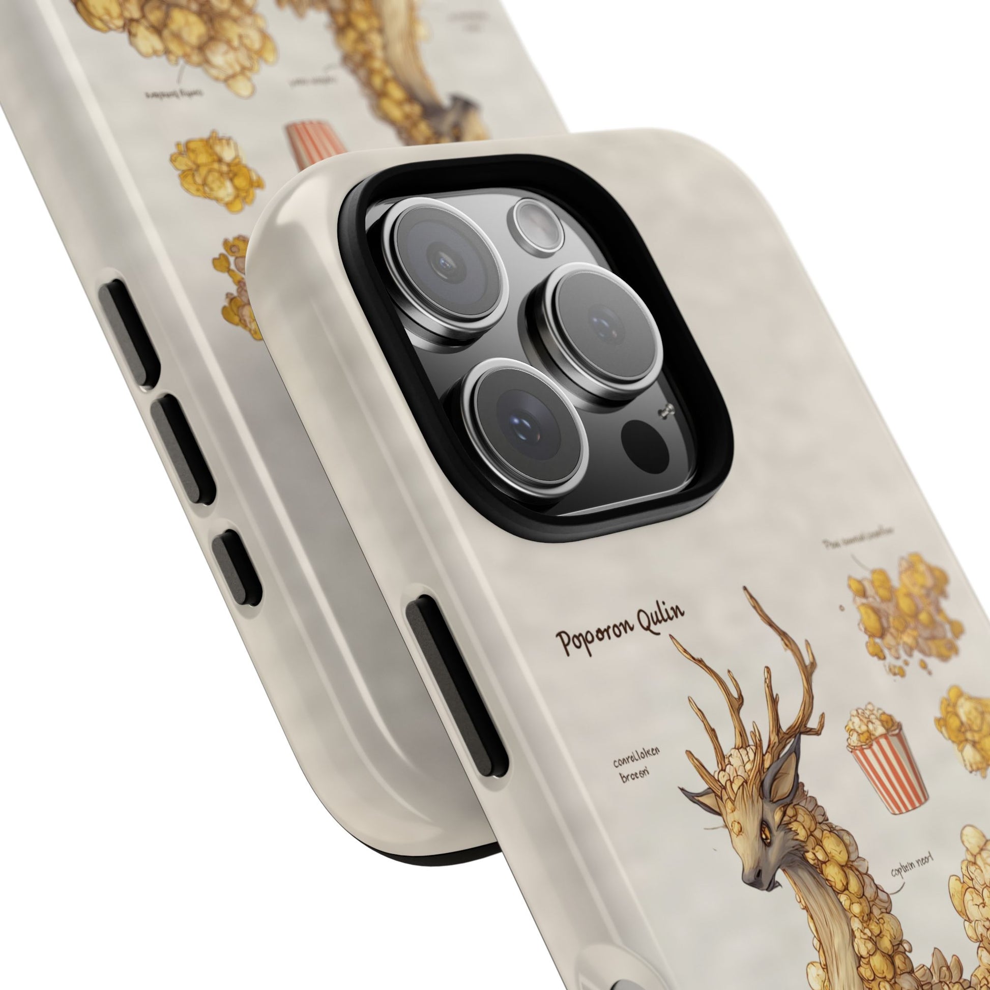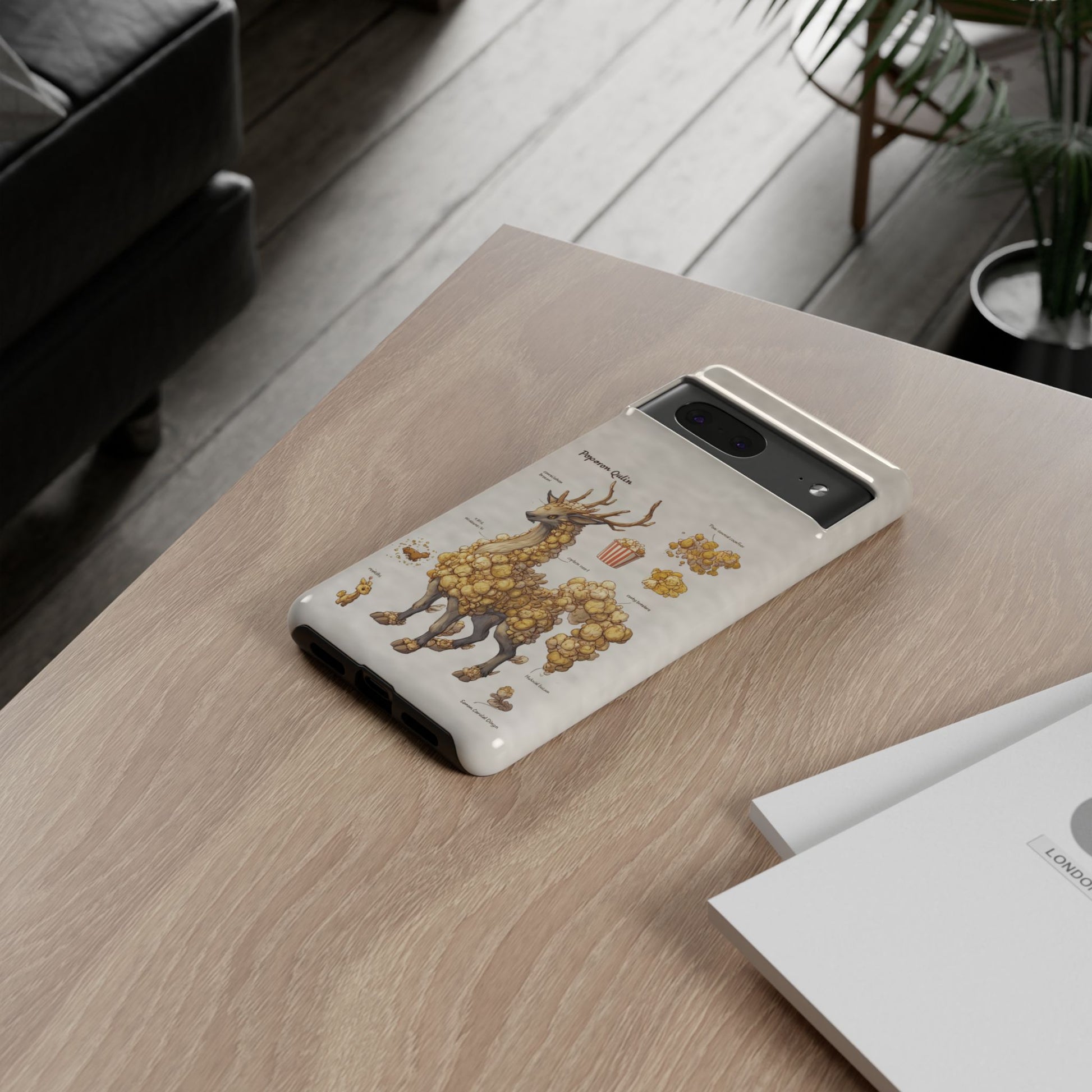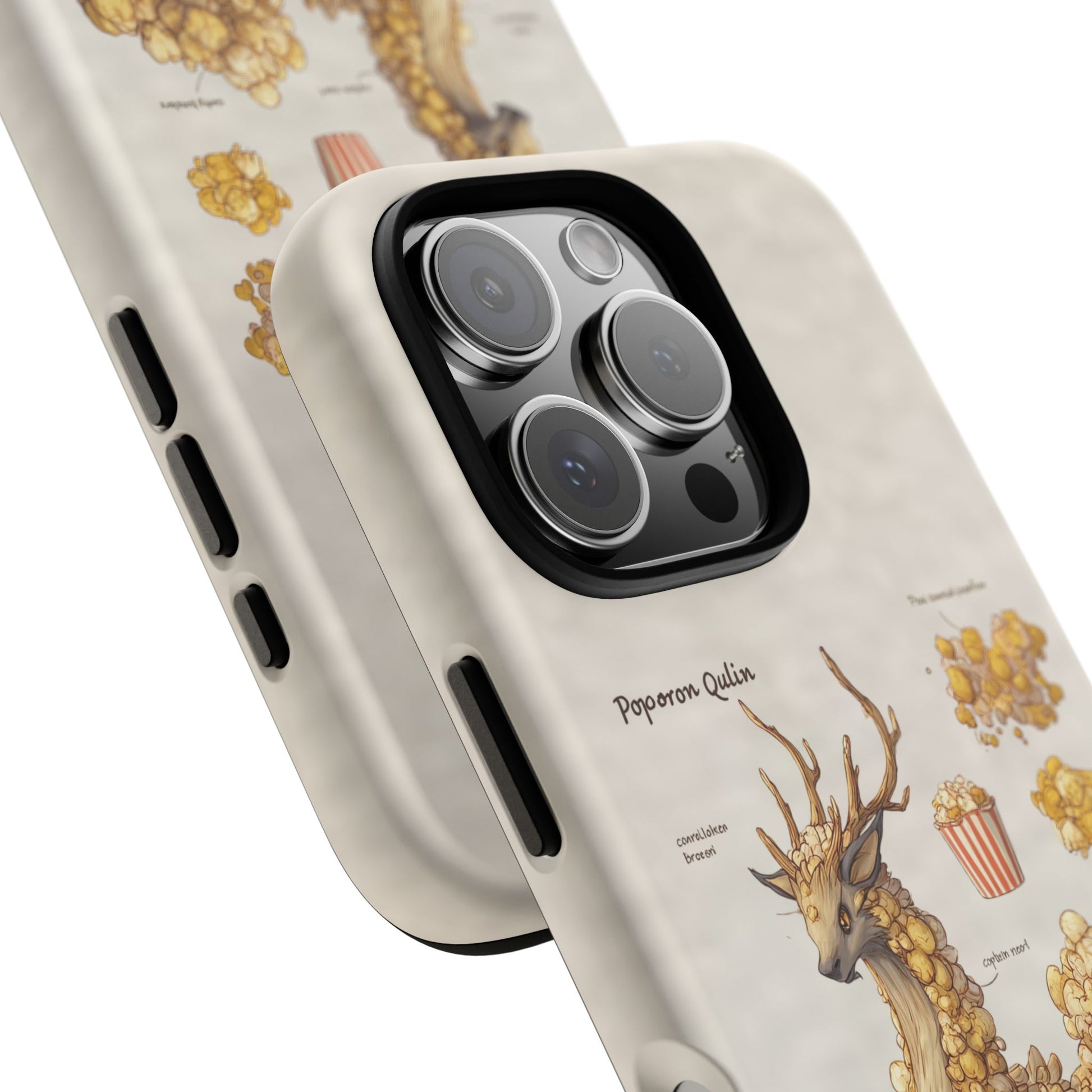 Lightweight protection with a playful, artful twist. This durable dual-layer phone case pairs a tough polycarbonate shell with a cushioned TPU silicone liner to guard against drops and daily wear. The surface showcases a whimsical botanical-creature illustration—mounds of golden popcorn-like growths forming a gentle, deer-like companion—printed in full-wrap, high-density ink that holds detail and depth. Subtle, neutral background tones keep the artwork front and center while clear port openings and wireless-charging compatibility keep everyday use effortless. Weather-resistant inks and certified materials mean the case stays looking fresh through regular use when cared for according to handling notes. Carry a little narrative and a lot of protection with you—this case blends durable function with storybook charm.